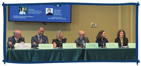 L – R: Daniel Bresette, President, EESI; Alejandro Moreno, Associate Principal Deputy Assistant Secretary of Office of Energy Efficiency, DOE; Lisa Jacobson, President, Business Council for Sustainable Energy (BCSE); JC Sandberg, Chief Advocacy Officer, American Clean Power (ACP); Bryn Baker, Senior Director of Market and Policy Innovation, Clean Energy Buyers Association (CEBA); and Cheryl Lombard, Senior Program Director of Power, Infrastructure and Minerals, ClearPath.