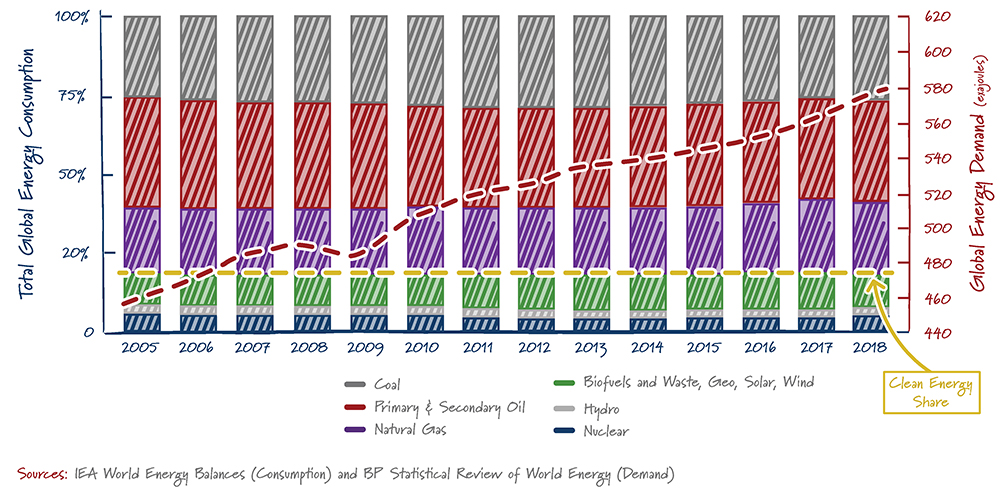 However, clean technology available today is simply not up to the task of global economy-wide decarbonization. As the chart below indicates, the global supply of clean energy has remained stagnant since 2005. We need to focus on breakthrough technologies that offer both better performance and lower costs than the traditional emitting technologies in the market today – only then should we expect to truly change this trajectory.