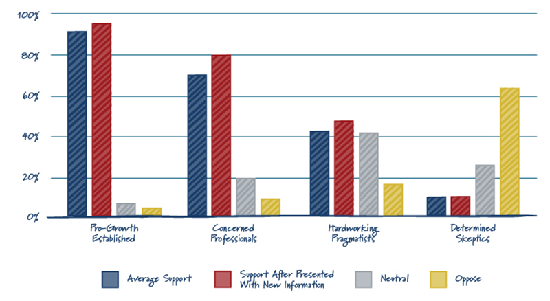 People of all backgrounds support nuclear energy. Combining income, education, and occupational demographic factors, Potential Energy split its participants into four groups: