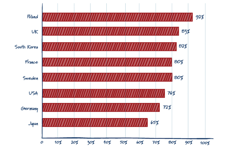 Between the eight countries, on average nearly 64% of people clearly support advanced nuclear; although, the average percentage of people in support of advanced nuclear power skyrockets to 79% when people are presented with only yes or no options. Even in countries where anti-nuclear policies were implemented in recent years, such as Germany and Japan, 72% and 65% of the populations, respectively, favor nuclear energy. As support for nuclear energy increases, governments should cooperate to deploy dispatchable and reliable nuclear energy.