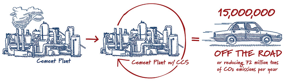 Carbon capture. Cement plants are a low-hanging fruit for carbon capture, which can result in significant carbon reductions for the industry. The Department of Energy is collaborating with the private sector to explore the feasibility of two demonstration projects, but more are needed to drive down the costs and bring the technology to scale. If applied to all U.S. cement plants, carbon capture could avoid up to 72 million tons of CO2 emissions per year. This is equivalent to taking more than 15 million cars off the road.